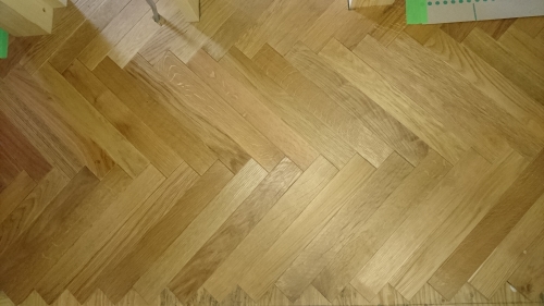 床の養生がはがれて、全面にヘリンボーンが見えるようになった時は、感動ですよね~![]()