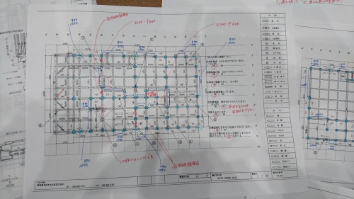構造計算しても、実際の現場で使われる材が異なっていたり、サイズが違っていたり、また、梁の掛け方が少しでも違っていたりすると、力の伝わり方が変わってきてしまいますので、この部分のチェックと打合せ参加は、絶対に手を抜けません!(とっても、それ以外も抜いていませんが・・・(笑))