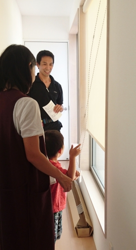 ②ご了解頂いたあと、実際の取り付け業者さんが伺って、現場での採寸を行ないます。
