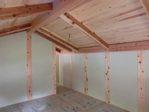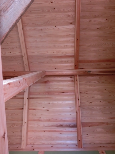 ロフトの天井は、杉板張り。床も杉板です。なんと、厚みは27ミリ。ほんと、木のいい香がして、肌触りも最高!!