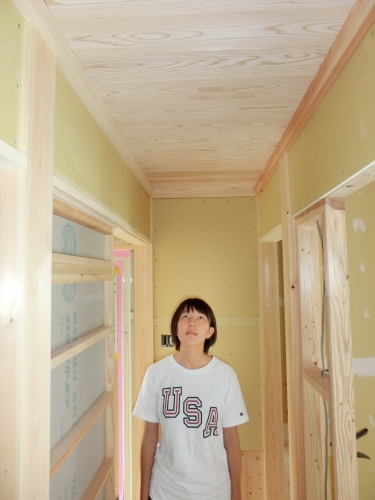 天井は、杉板張り。廊下の天井まで杉板張りです!!