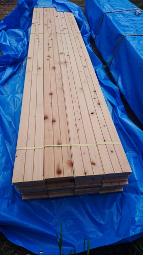 1階床には、27ミリの「桧」の無垢材。早く、床に張られた状態を見たい!!歩きたい!!