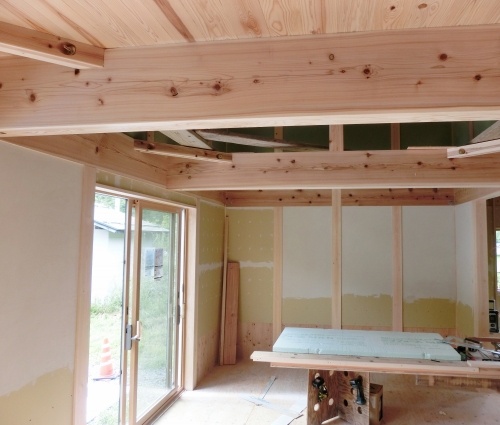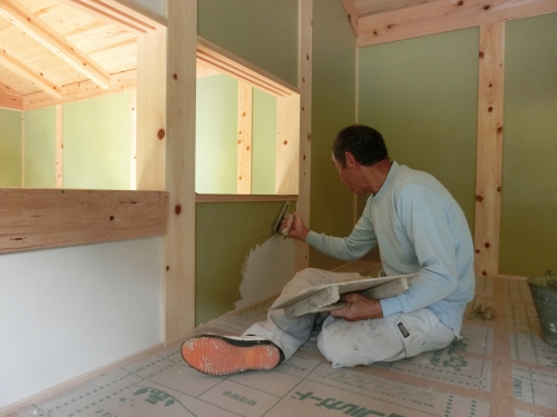 今日の現場は、棟梁と左官さんの作業。