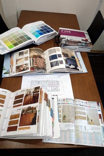 朝9時からの打ち合わせを終了し、次回の打ち合わせ用に、外壁からクロスまで、一気にサンプルを依頼するために、