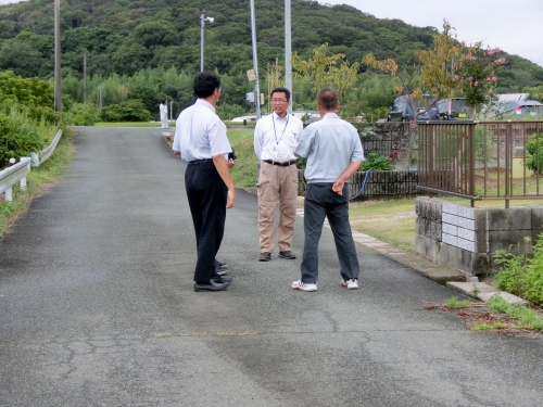 今回は敷地が広いので、行政の方との確認担当と、お客様への説明が分担され同時進行されています。