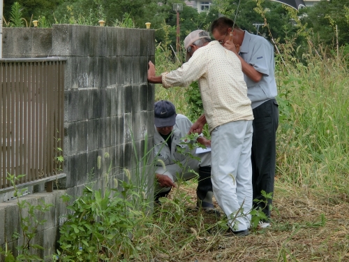 図面上だけでは、実際は分からない部分、認識違いの部分もあるので、全ての境界位置を一緒に回って説明・確認していきます。