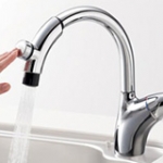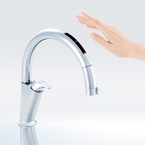 吐水口の下に手や食器などを近づけると、センサーが感知して自動的に水やお湯が出てくるタイプ。