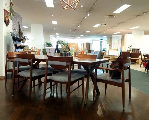 このダイニングテーブル、実物は、とっても素敵~。脚のデザインが、こだわっていてカッコいい!!