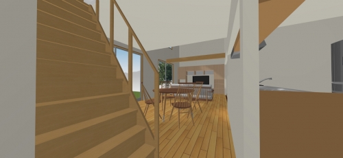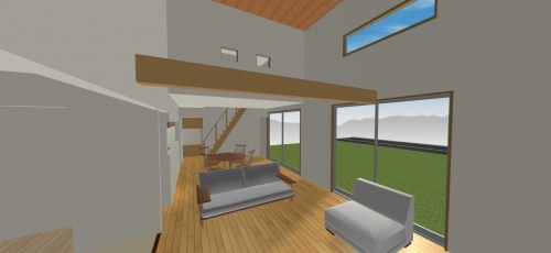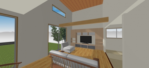 シラス壁と桧の腰壁だったり、床には桧の無垢フローリングを選択。(まだ、実際の写真ではないので、仕上げがきちんと表現されておりませんが・・・)